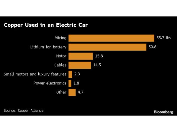 Cantidad de cobre que se utiliza en un auto eléctrico.