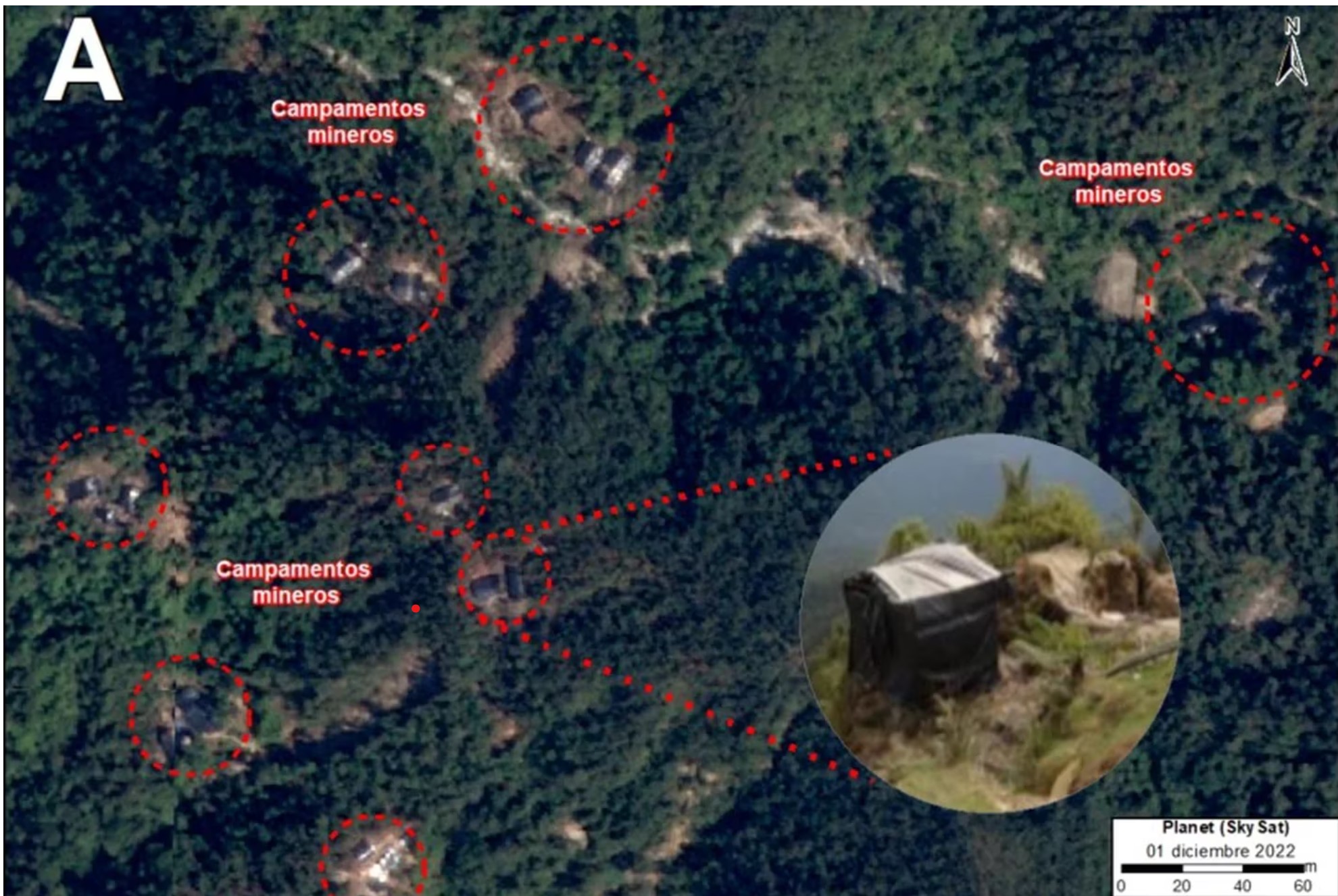 A través de imágenes satelitales de alta resolución, los investigadores identificaron 22 sitios con actividad minera, que dan evidencia de que dicha actividad continúa en aumento en la actualidad, puesto que de esto ya se advirtió en el 2012.