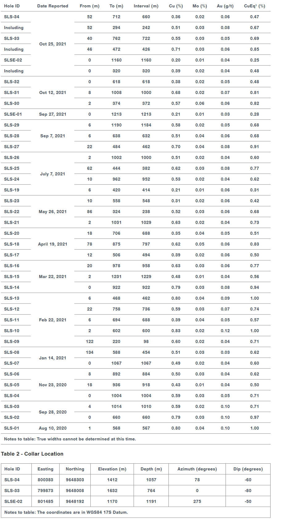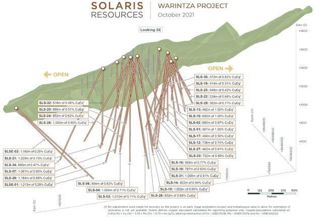 October 25, 2021 – Vancouver, B.C. – Solaris Resources Inc. (TSX: SLS; OTCQB: SLSSF) (“Solaris" or the “Company") is pleased to report assay results from a series of additional holes from ongoing resource growth and discovery drilling programs at its Warintza Project (“Warintza” or “the Project”) in southeastern Ecuador.